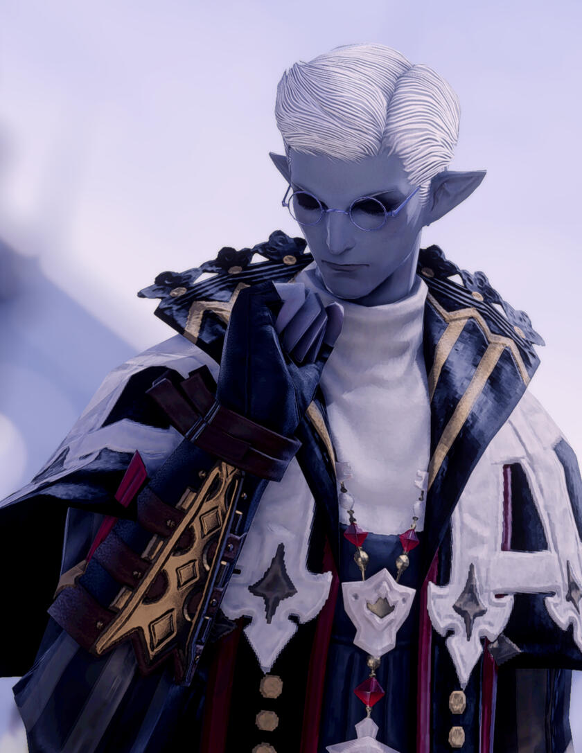 Once a noble knight of Ishgard, Sir Vosaille was sentenced to death for committing an unspeakable sacrilege, though either he survived his execution or was granted an opportunity to flee the Holy See for he yet lives. Plying his peerless swordsmanship for an adventurer's meager pittance, he and Ragi'zi became brothers-in-arms through shared strife. They are wont to reminisce on the countless close calls that they so narrowly escaped by the grace of the Spinner.